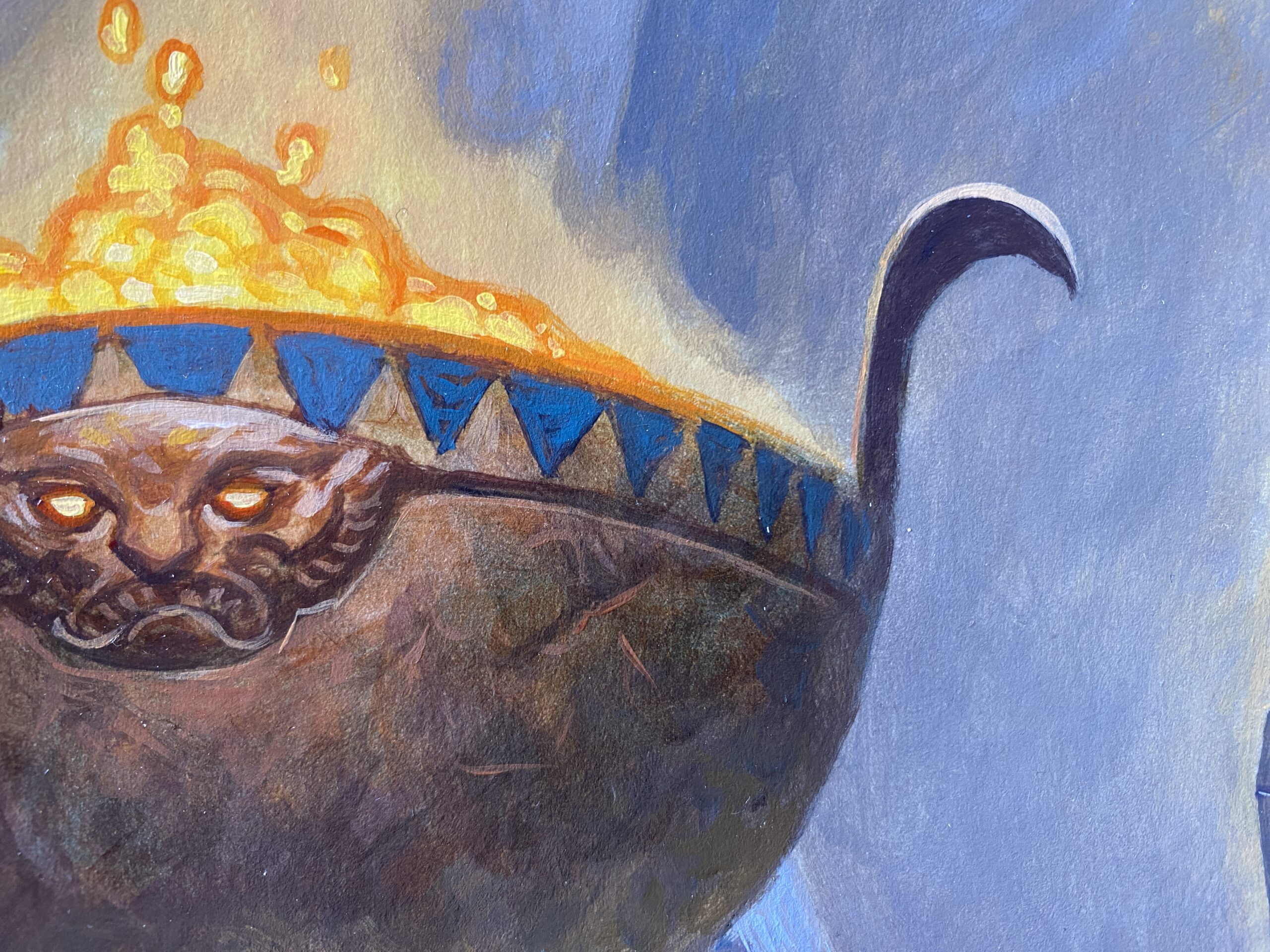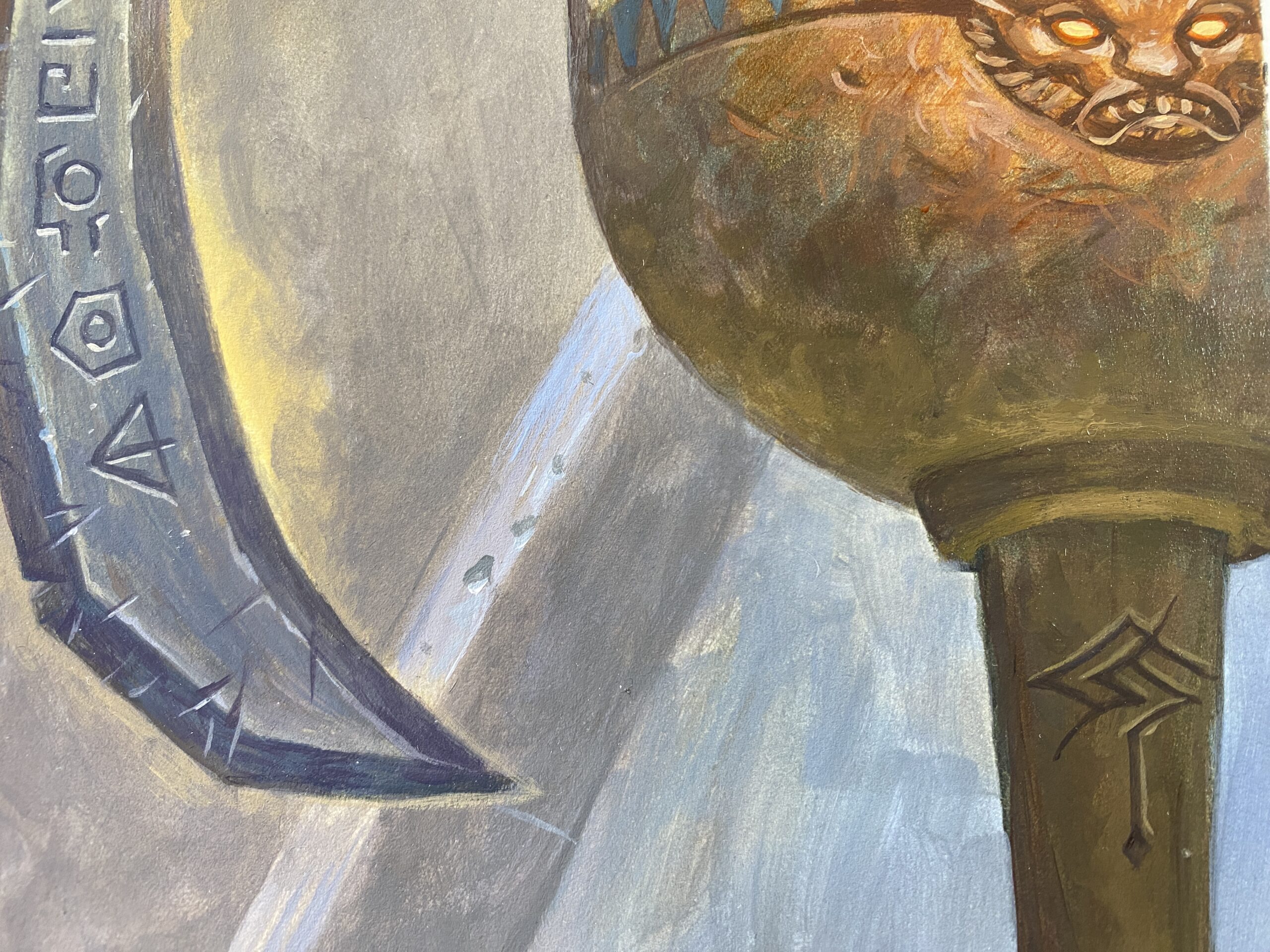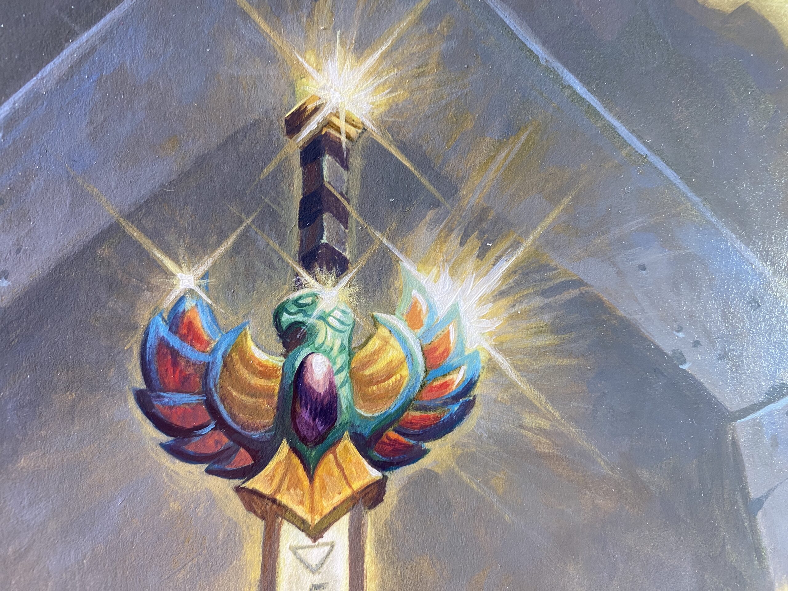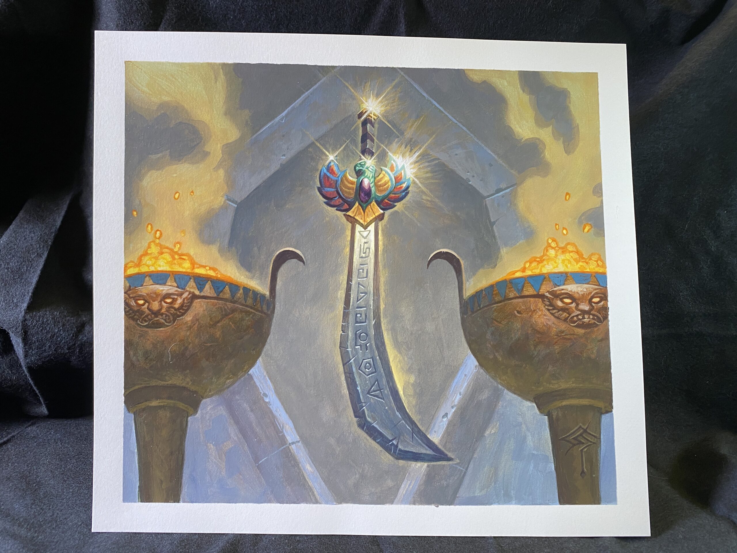 Original painting for World of Warcraft TCG “Blade of the Burning Sun” Acrylic 10×9 on 11.25×10.25 Bristol paper